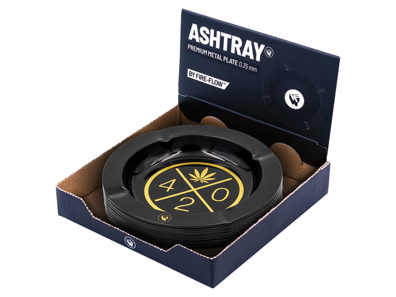 Metalowa popielniczka z wzorem 420 w kolorze złotym.